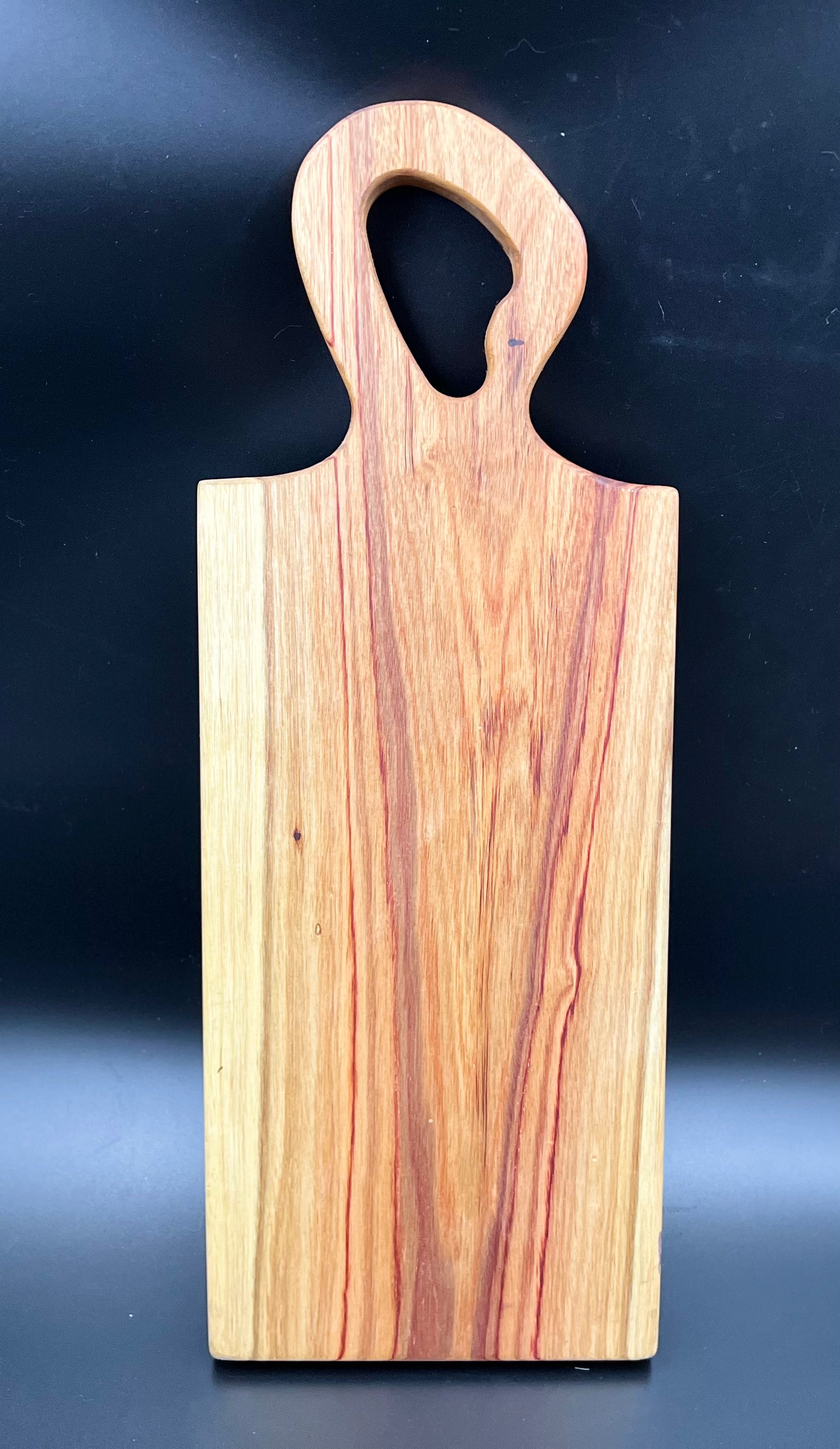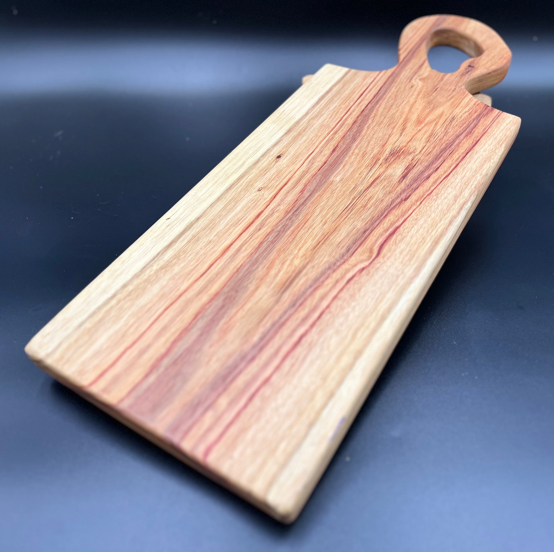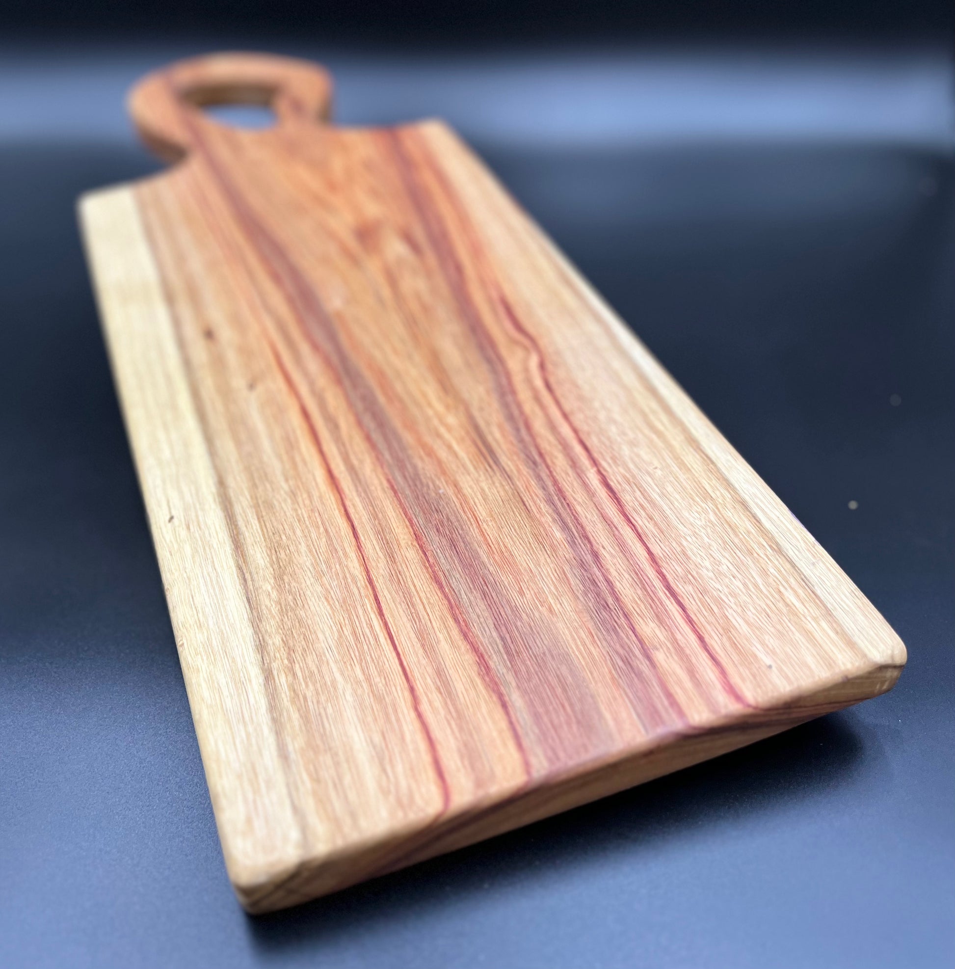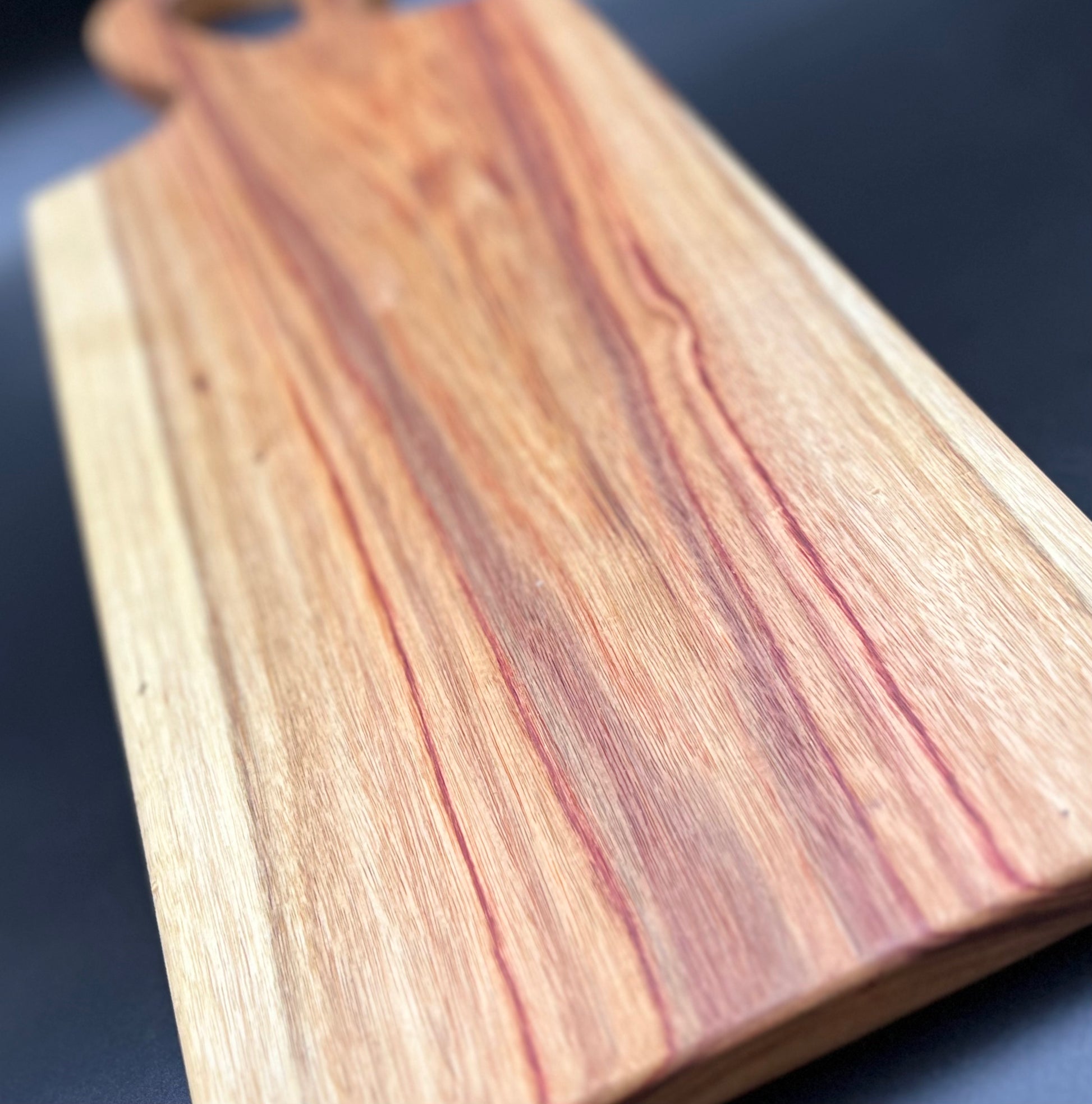 Beautiful Canary Wood Charcuterie board with striking reds, browns, and yellows