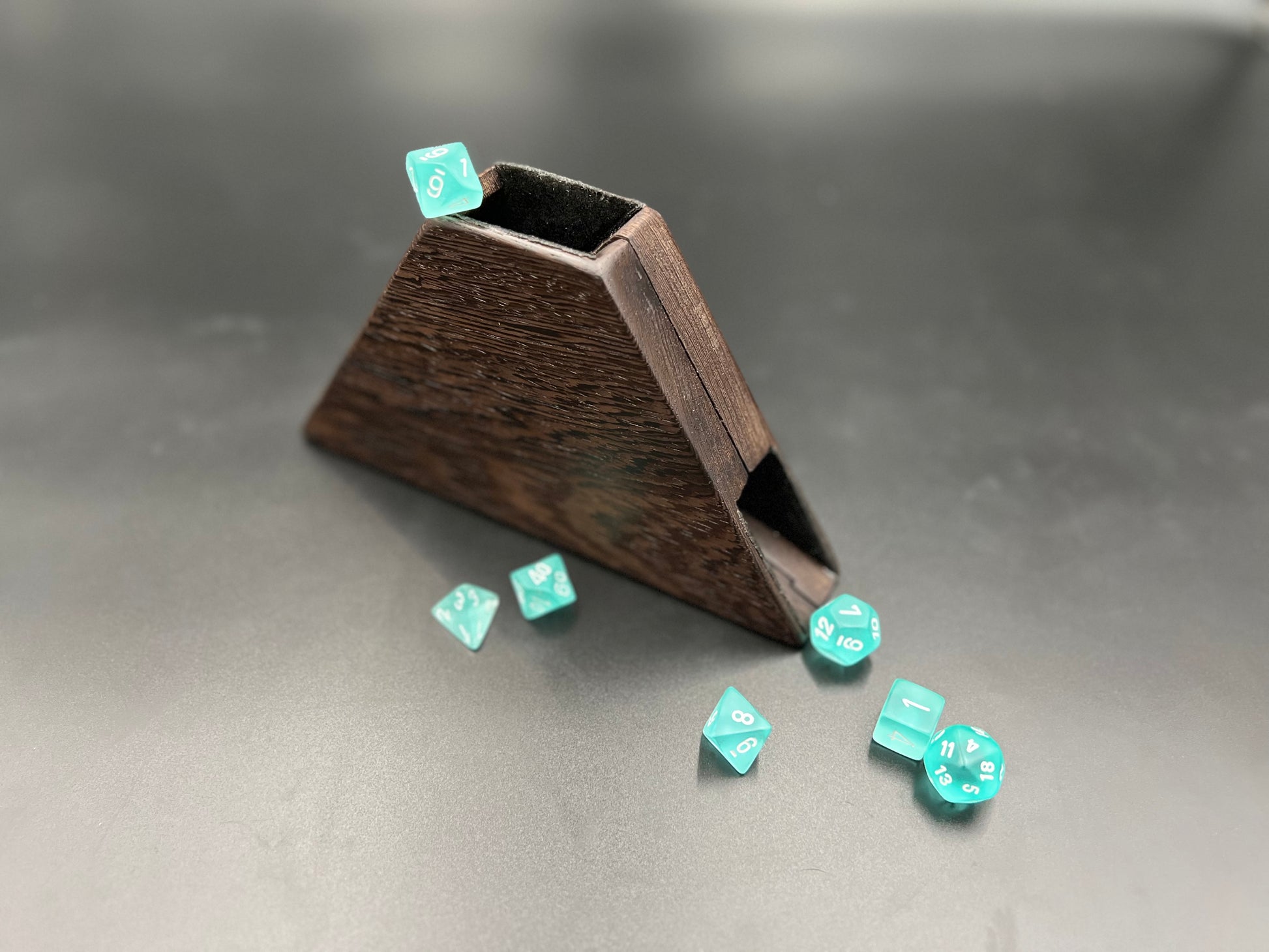 But we digress! This was created at the request of a 'wasn't initially a customer but now is a' customer who liked the idea of a dice tower but felt wagging a larger tower around the city wasn't feasible. So we did what anyone would have done and locked him in a room and forced him to consult with us until we came up with something he WOULD buy!